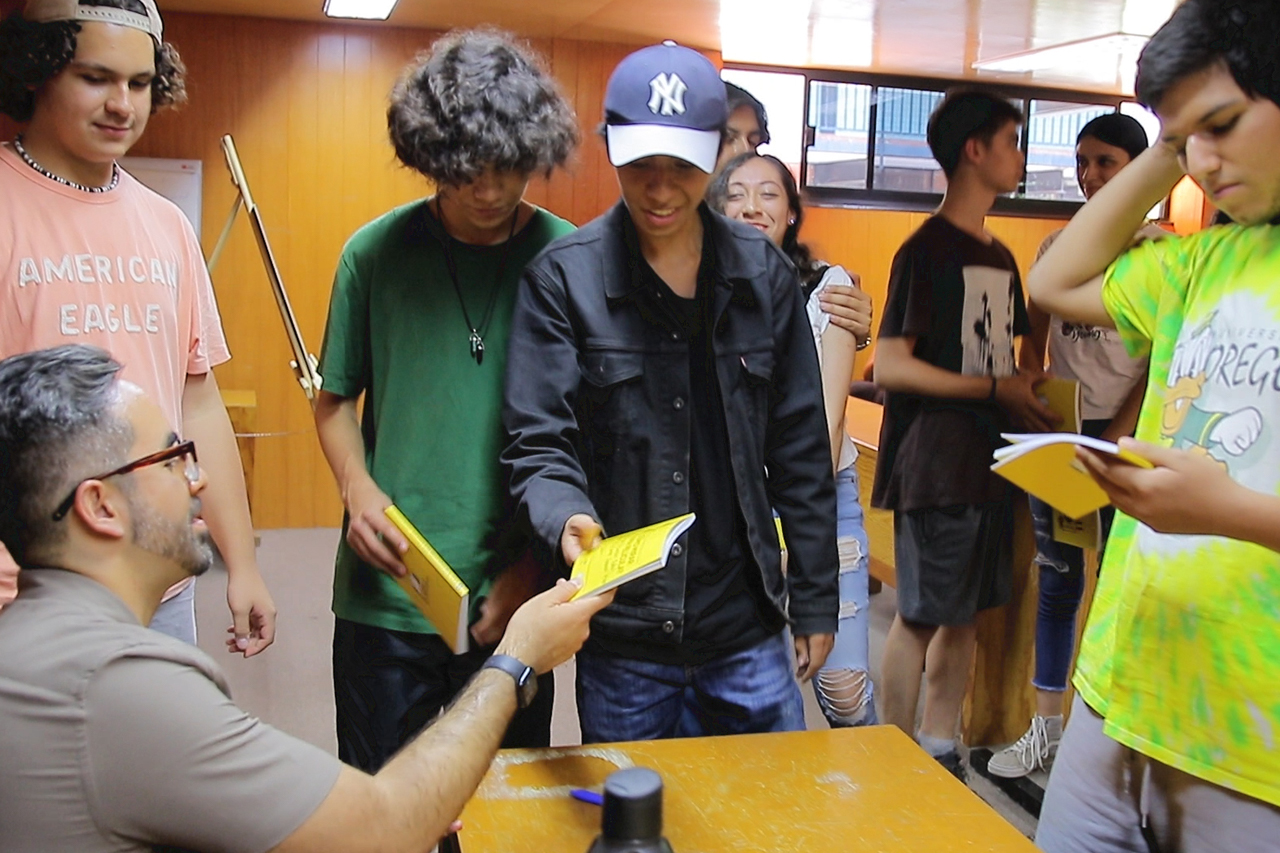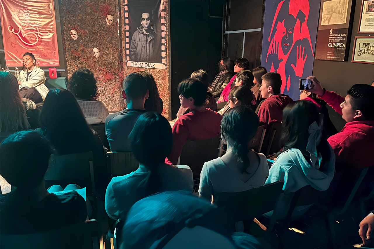 El taller de mediaciones en el aula se realiza de manera grupal con un tallerista frente al grupo para brindar al docente un espacio de intercambio, colaboración y la experiencia que el proyecto quiere generar en los estudiantes.